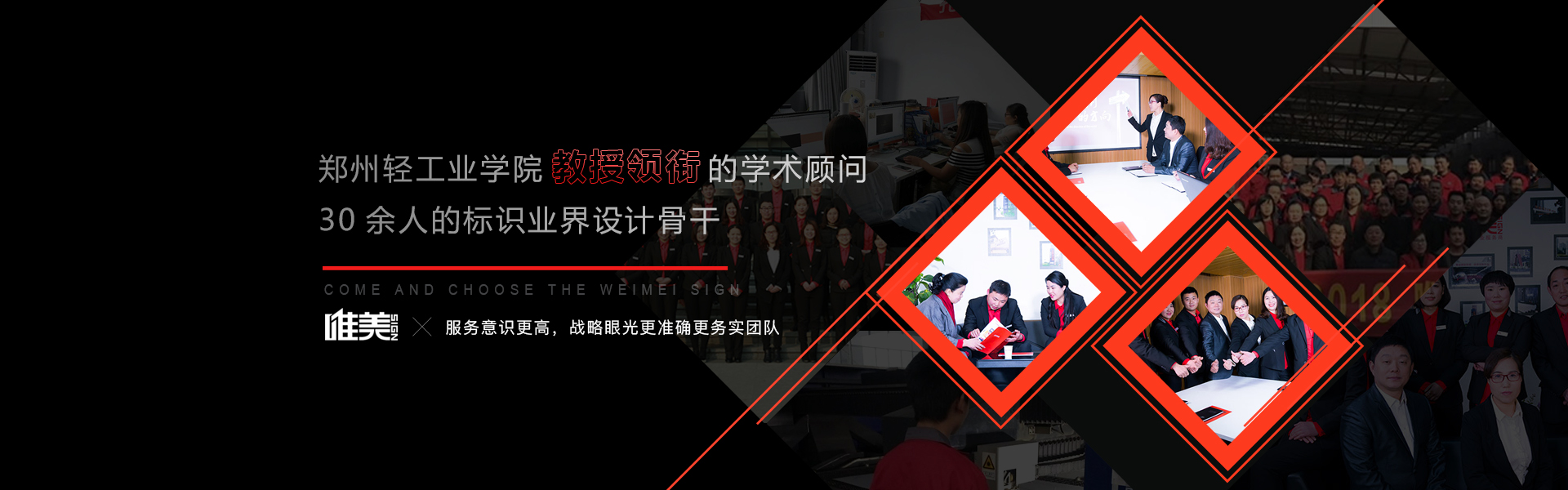 鄭州唯美標(biāo)識設(shè)計(jì)制作有限公司是一家集標(biāo)識系統(tǒng)開發(fā)、設(shè)計(jì)、制作、安裝、售后服務(wù)于一體的專業(yè)化標(biāo)識公司。 13年專注標(biāo)識行業(yè)定制服務(wù),已成為地產(chǎn)住宅、商業(yè)廣場 、商辦公務(wù)、醫(yī)院系統(tǒng)、學(xué)校文化、工業(yè)園區(qū)、旅游景區(qū)、酒店餐飲、銀行金融等多個(gè)領(lǐng)域的提供標(biāo)識系統(tǒng)解決方案公司。